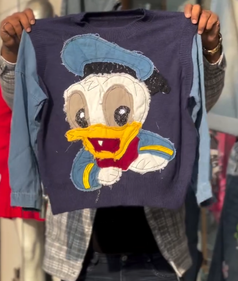 The highlight of this sweater is the eye-catching cartoon duck patch design πŸŽ¨πŸ¦†. Featuring detailed embroidery and textured patchwork, the playful character adds a fun, youthful vibe that sets this sweater apart from basic knits. The bold graphic makes it a perfect choice for those who enjoy expressive fashion and standout pieces.