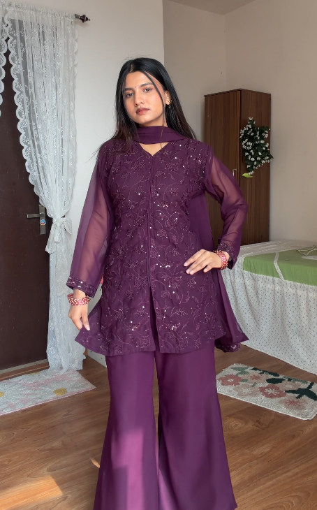 Step into the world of timeless elegance with our Women’s Embroidered Kurta and Palazzo Set, thoughtfully designed for women who love to combine tradition with modern style. β¨ This stunning ensemble features a beautifully embroidered kurta paired with matching palazzo pants and a delicate net dupatta, creating a look that is effortlessly graceful and perfect for festive occasions, parties, or casual gatherings. π