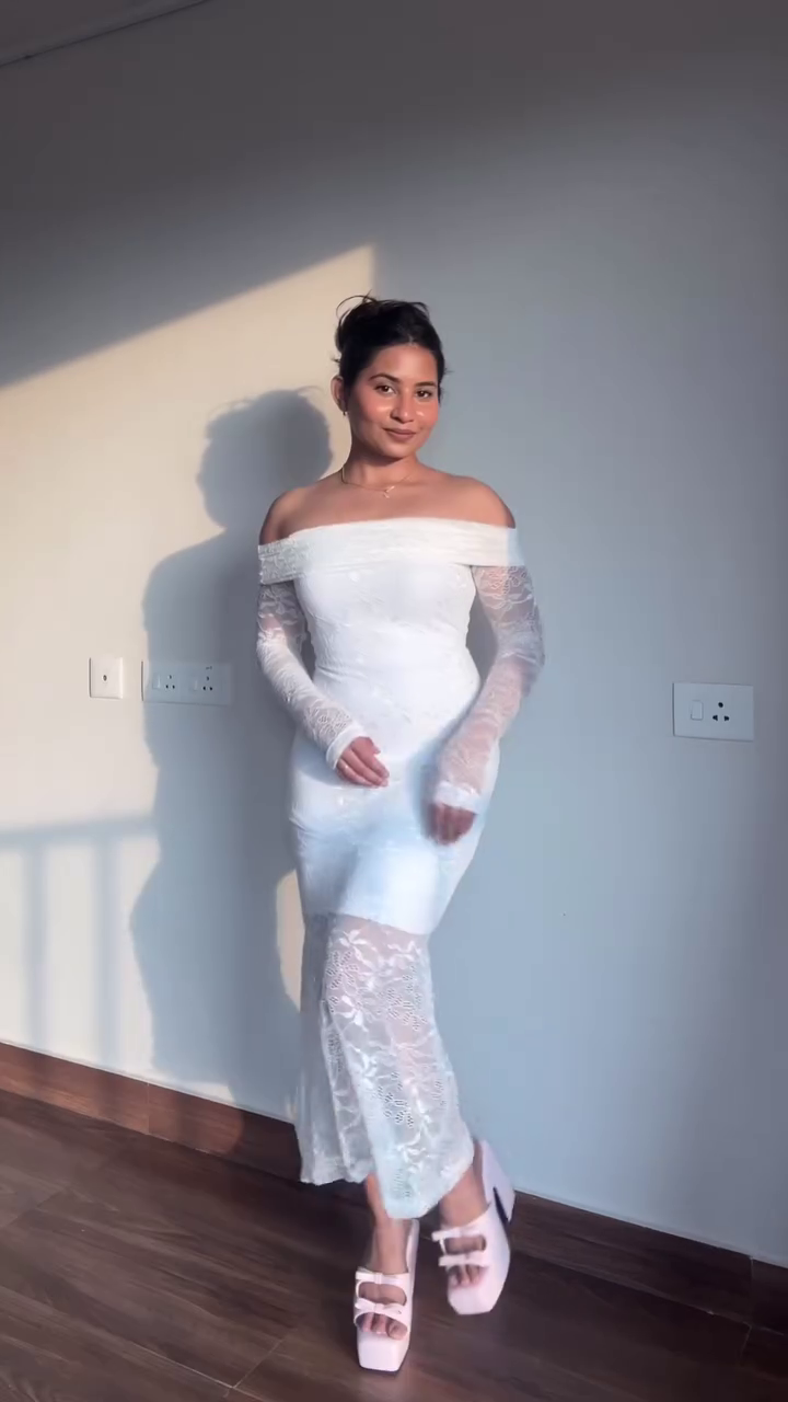 The dress features a perfectly structured silhouette that flatters without restricting. Its fitted bodice enhances your natural curves, while the flowing skirt drapes gracefully to create a soft, cloud-like movement. Whether you’re walking through a garden, stepping into a festive event, or posing for memorable pictures, the dress responds beautifully to motion, light, and breeze—making every moment feel magical.