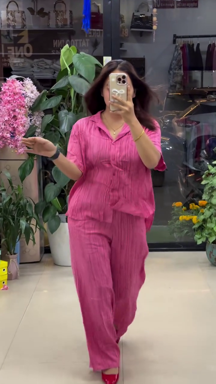 The set includes a coordinated top and bottom, designed to work seamlessly together or separately. The top features a modern cut with subtle detailing, such as buttons, tie-fronts, or relaxed collars (designs may vary), offering versatility for casual or semi-formal styling πβ¨. The bottoms are tailored yet relaxed, providing comfort while flattering all body shapes ππ.