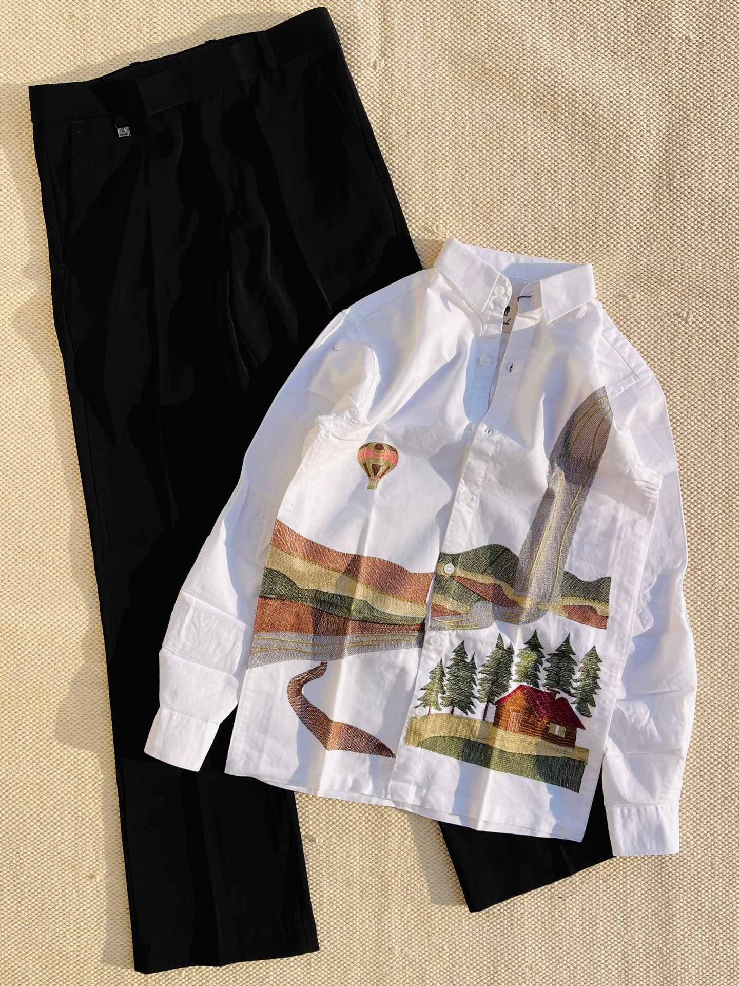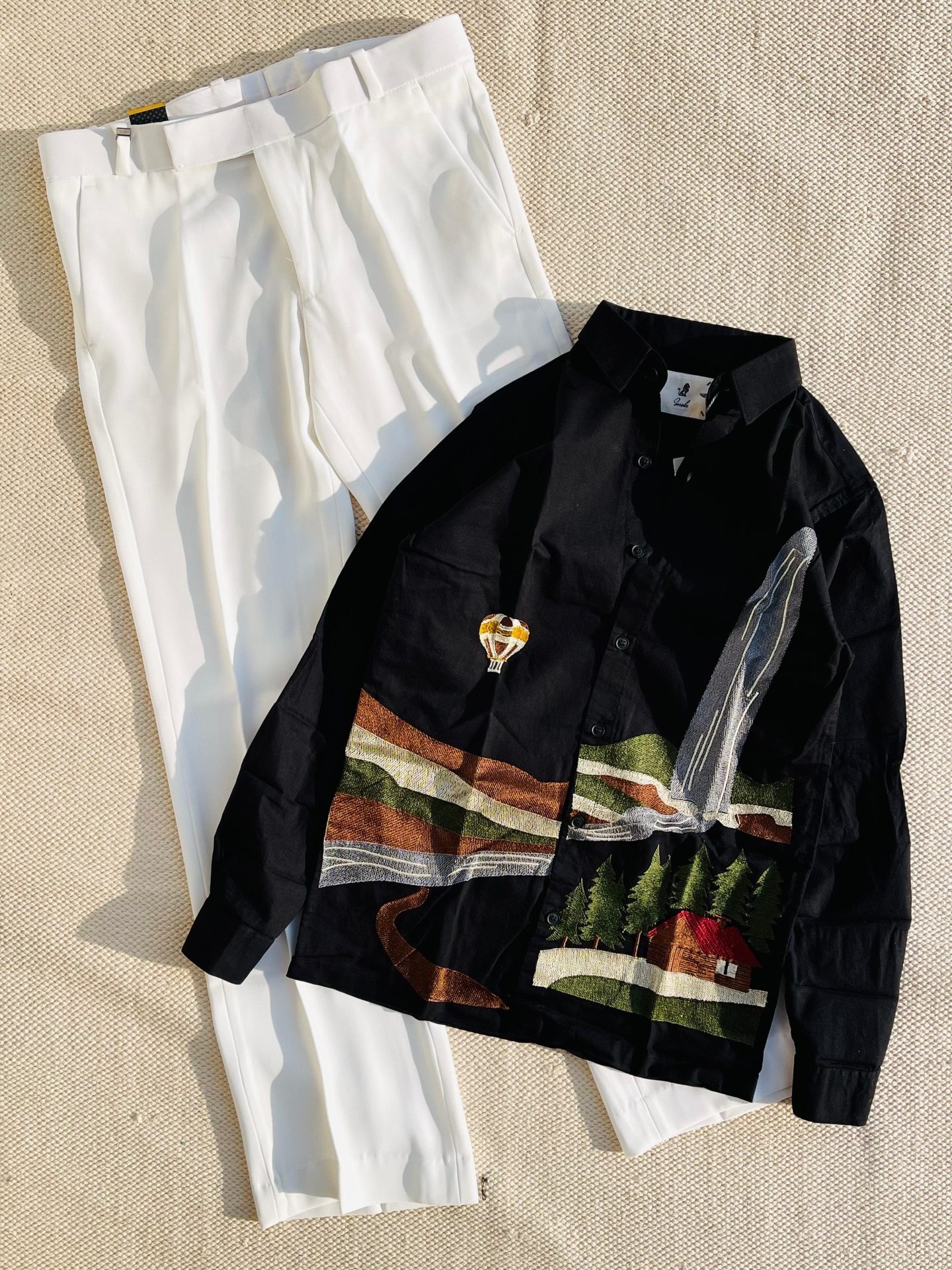 👜 Add minimal accessories to let the artistic print shine.
