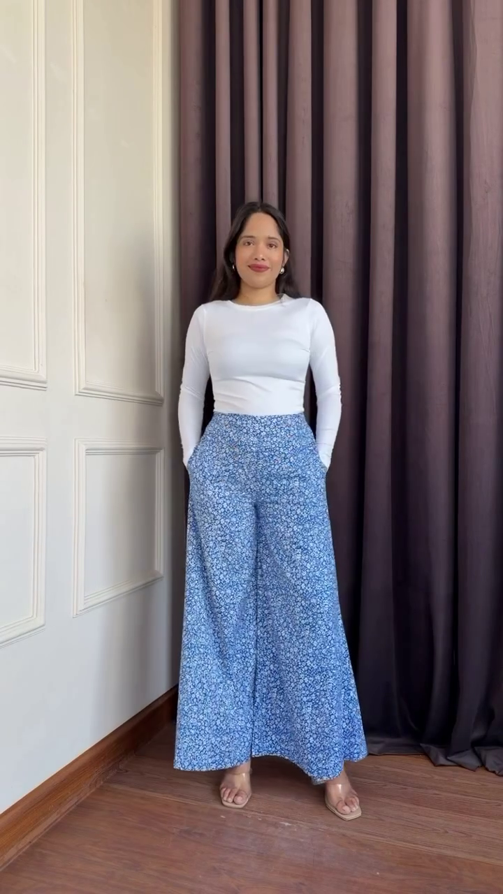 π Breezy Blue & White Floral Flared Trousers β High-Rise Relaxed Fit