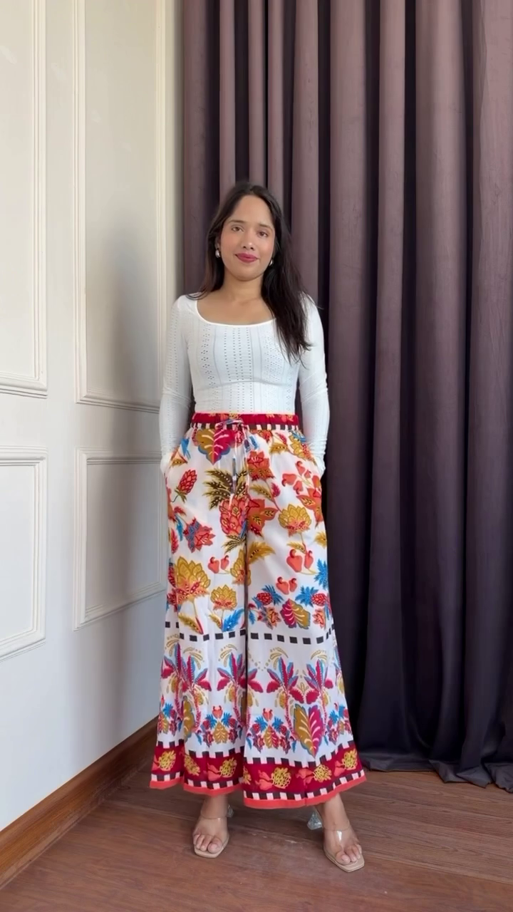 The blue and white floral print adds a refreshing, lively touch to your look, making these trousers perfect for spring and summer vibes. The intricate floral patterns bring a sense of femininity and charm, while the versatile color palette allows you to pair them with solid tops, blouses, or casual tees for endless styling possibilities.