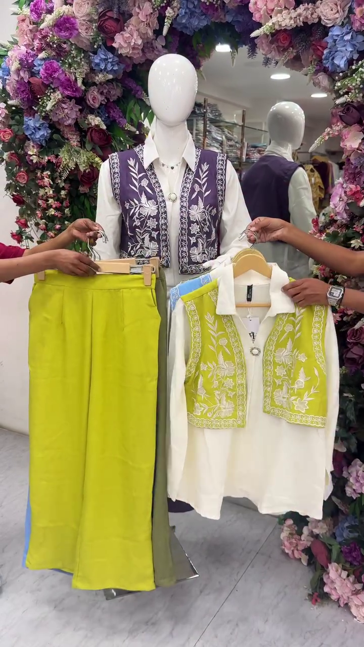 • 👖 Coordinated Trousers: Straight or slightly tapered cut for comfort and elegance.