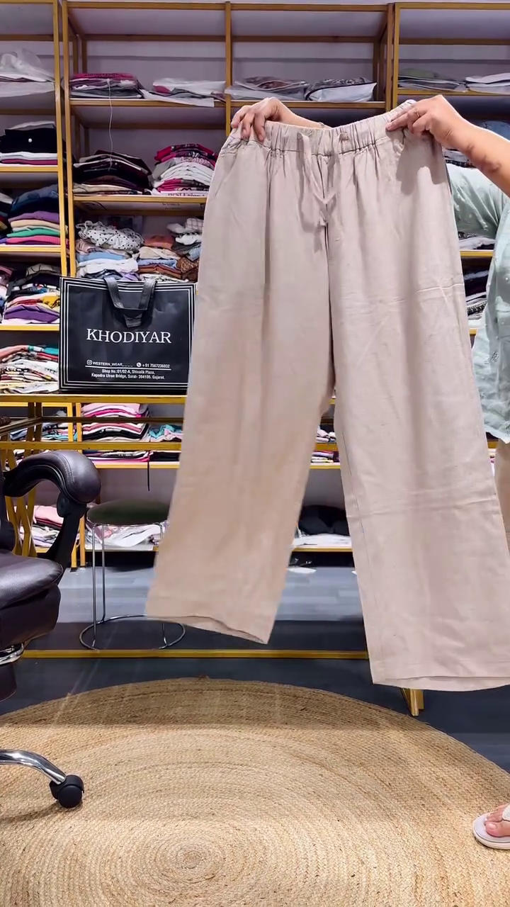 Paired with the shirt are our soft beige relaxed pants, crafted with an elastic waistband for maximum comfort and flexibility π€. The flowy wide-leg design provides ease of movement while creating a flattering shape for all body types. Whether youβre running errands or attending a small function, these pants promise both comfort and chic style.