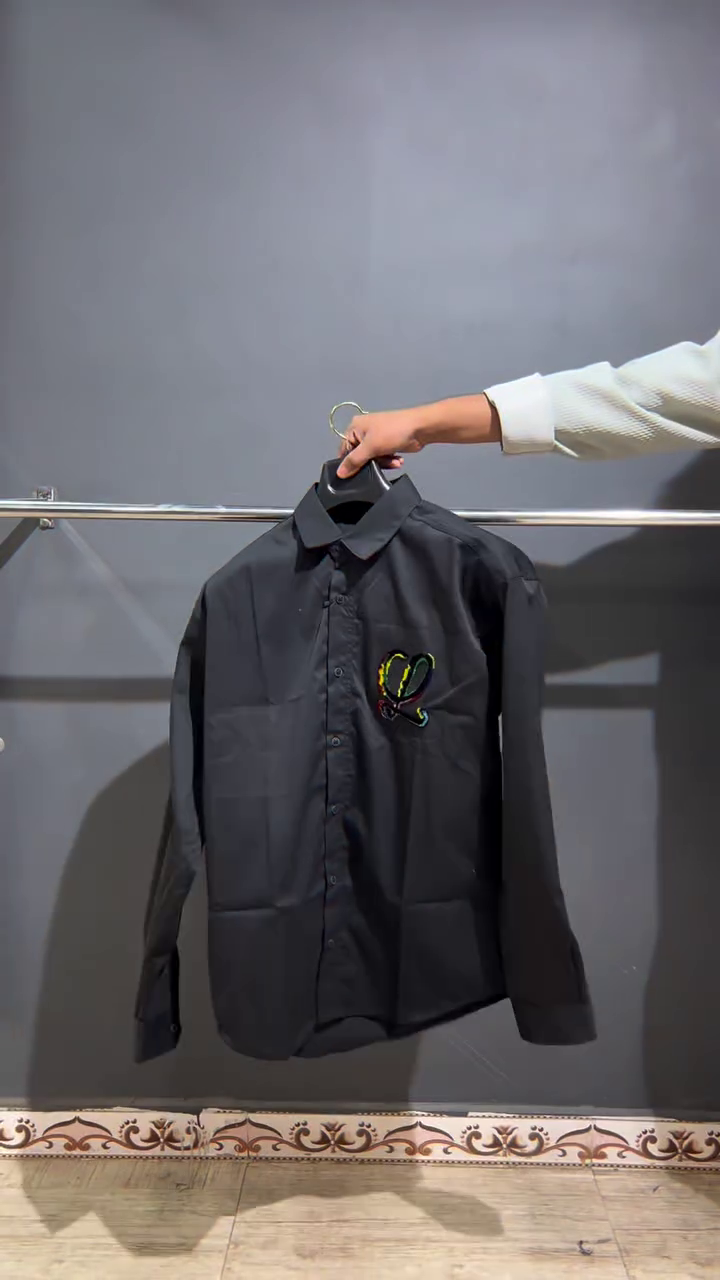 The highlight of this shirt is its unique embroidered patch design on the chest, adding a bold yet refined statement to a classic silhouette. 🎨 It blends minimalism with creativity, making it easy to pair with jeans, trousers, chinos, or even layered under a blazer for a smart, confident look.